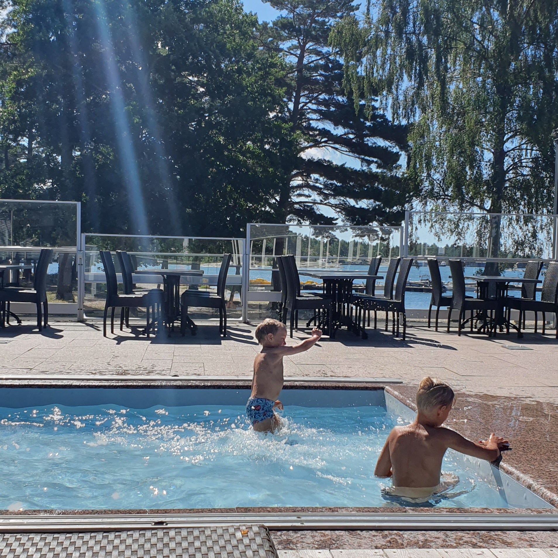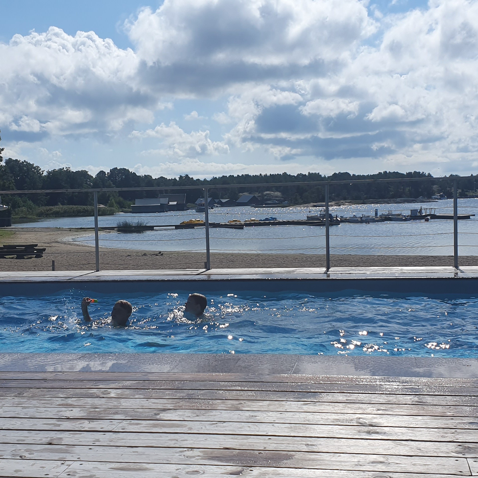 Att bada pool blev den stora favoriten i sommar! Här badar vi vid Käringsunds camping & resort.