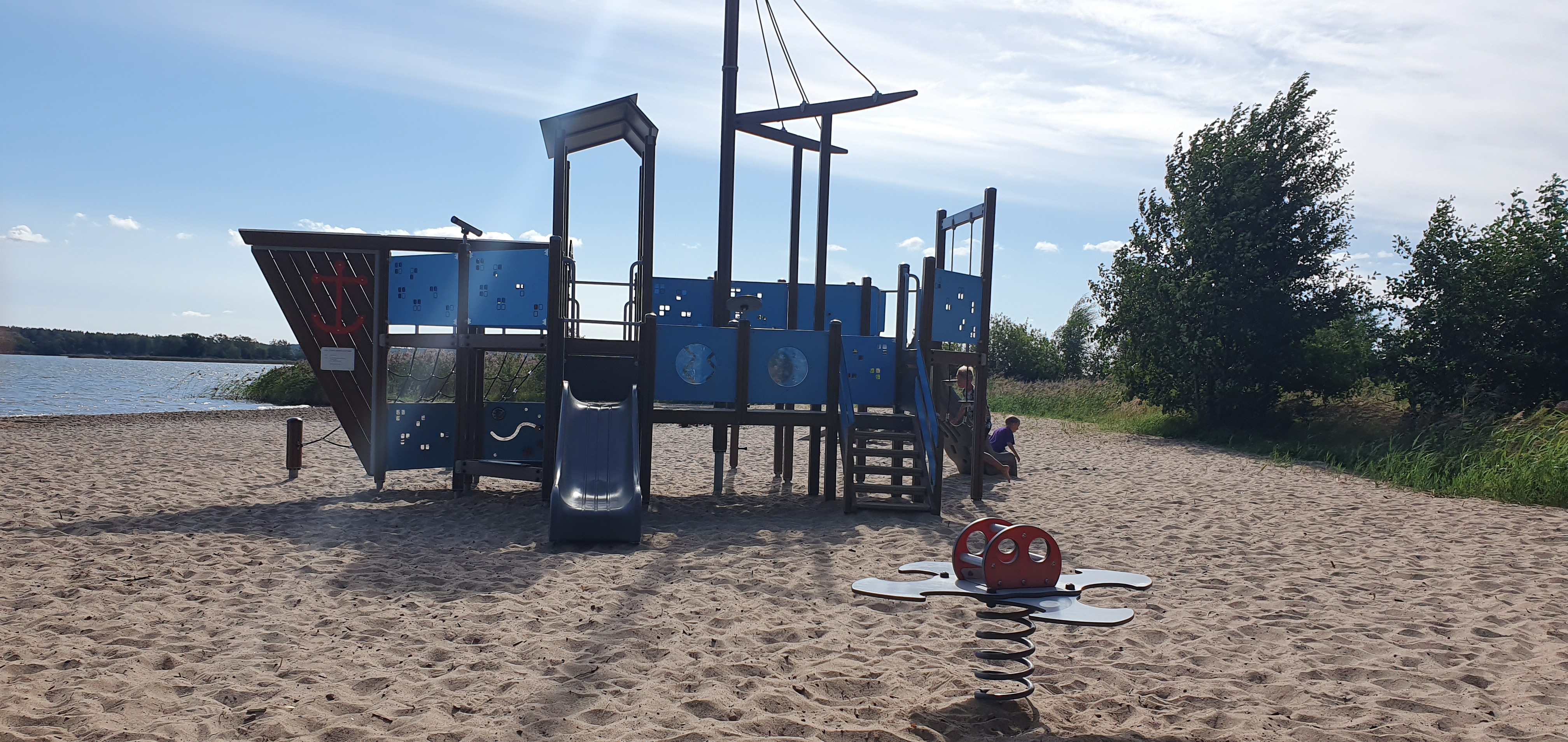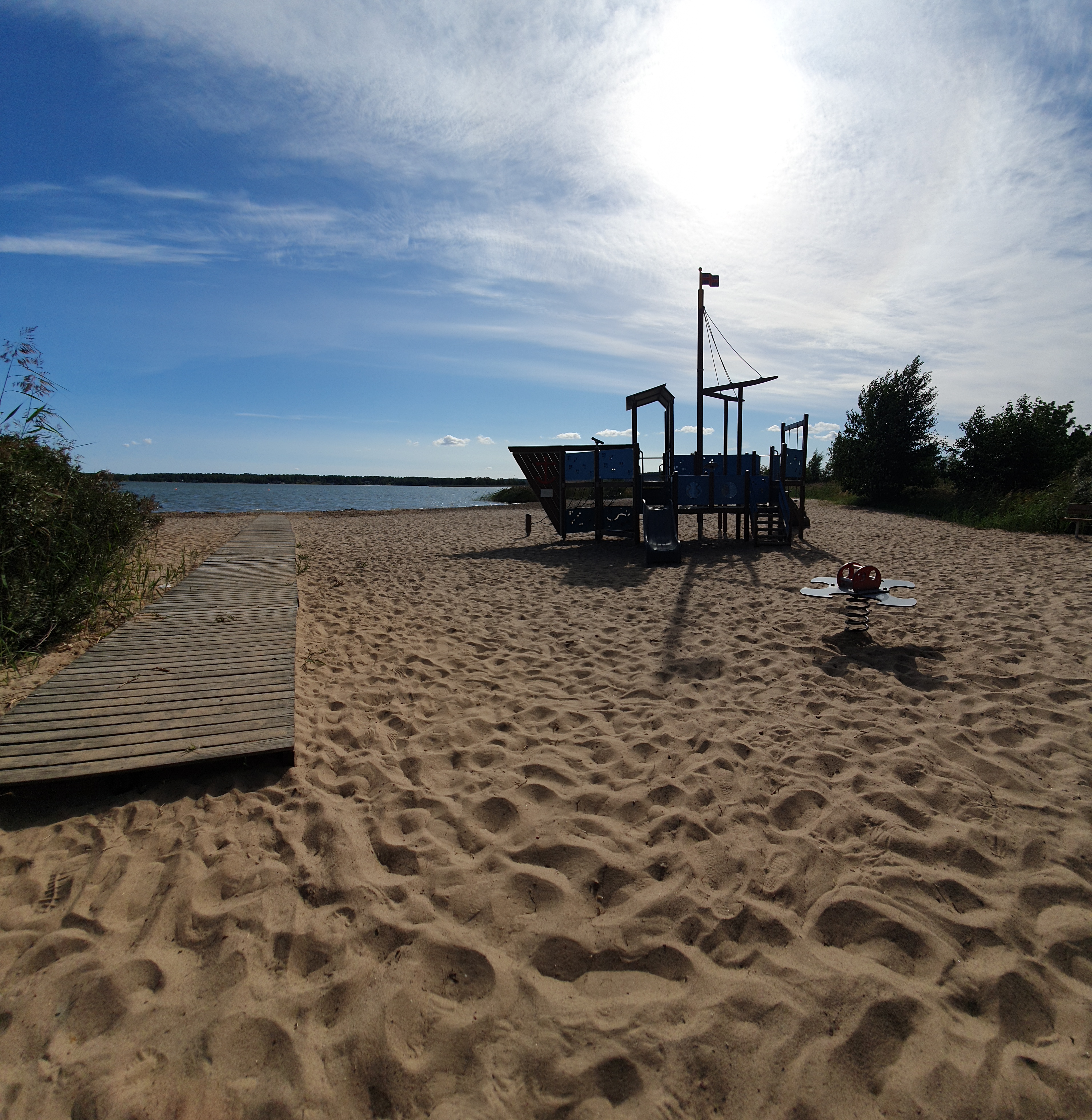 Lek vid lilla Holmen, där du kan leka på stranden och titta på kaniner.